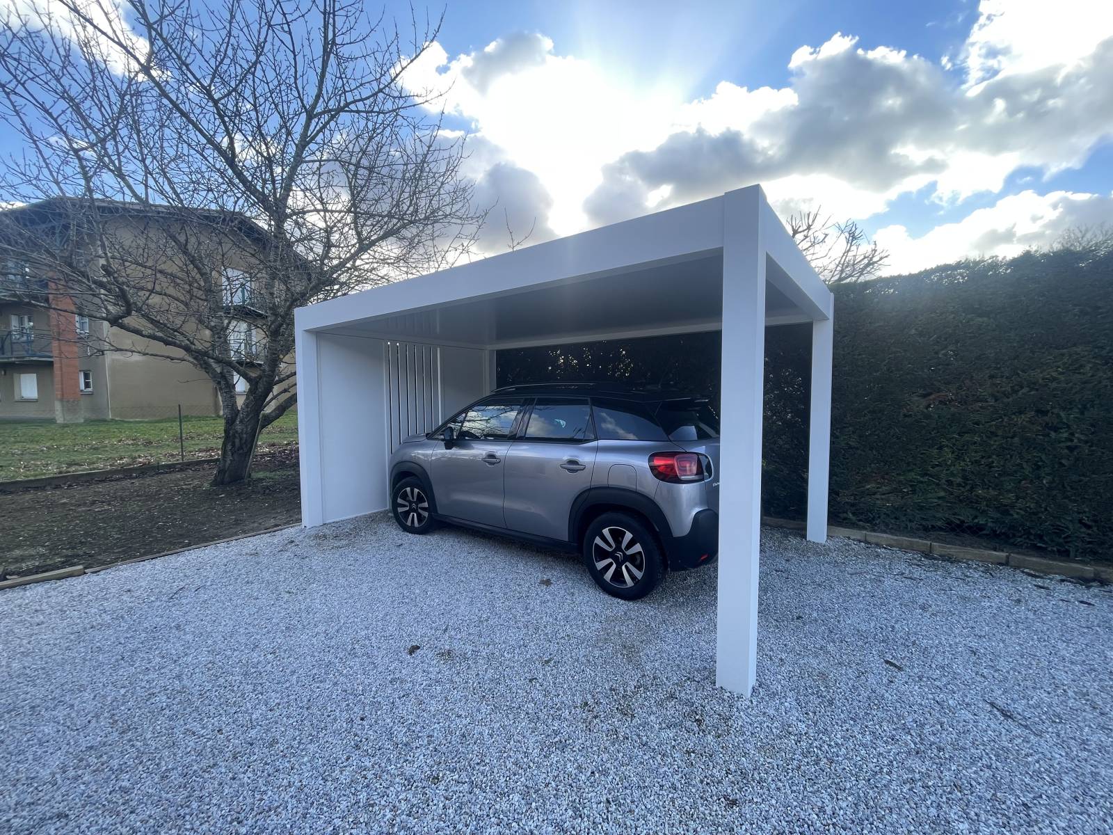 Alternative moderne au garage, le carport conjugue design épuré et fonctionnalité. En aluminium il protège efficacement vos véhicules contre les intempéries, tout en s’intégrant avec élégance à votre architecture.